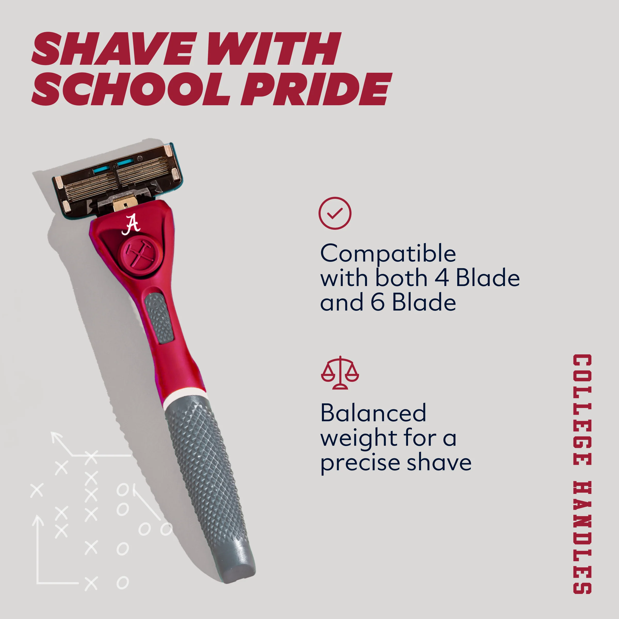 Your team. Your colors. Our limited-edition collegiate handles are built to rep school spirit from the sink to the stadium. Whether you go with our 4 Blade or 6 Blade cartridge, both are compatible with this weighty, diamond-patterned grip handle designed for ultimate comfort and control.